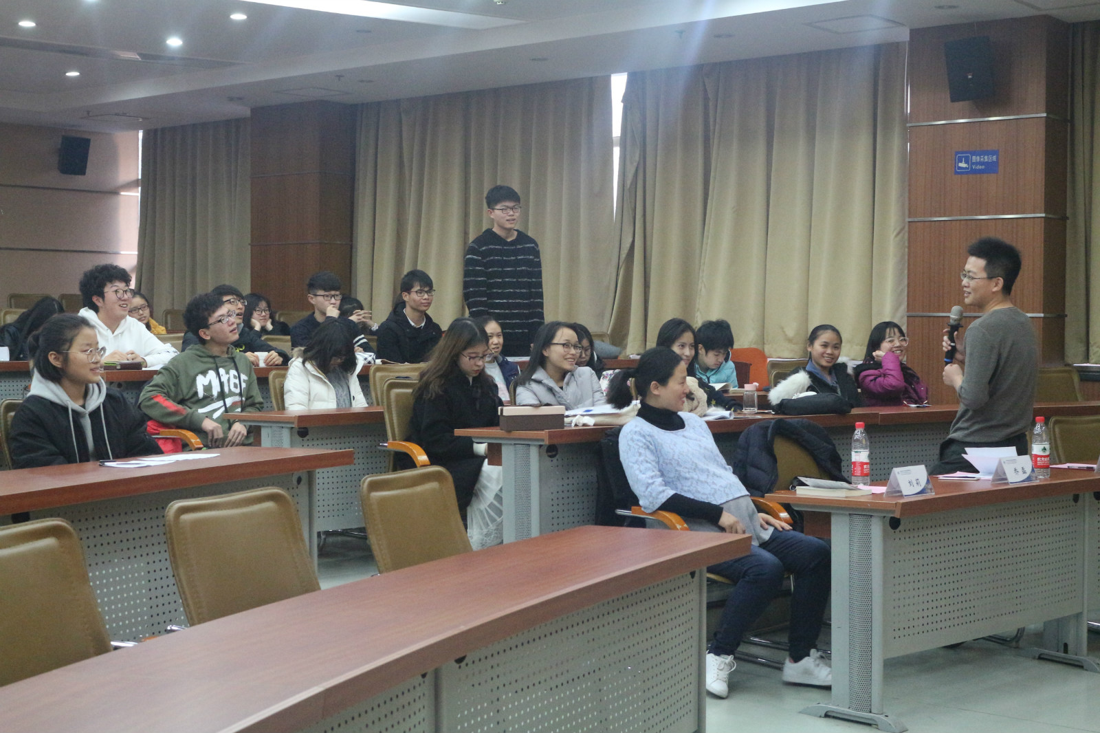 关于职业规划和自我管理,唐尔玲校友围绕就业规划,大学生活,学习与娱乐和时间管理,结合自己的经历与同学们进行经验分享;张华光校友以新生常见问题——时间分配和自我管理为开场,结合自身经历,作了深入浅出的解答,针对未来方向,他着重强调大学中各种“资源”的重要性,不仅是物质层面,人脉、信誉等同等重要;田霖校友则围绕就业规划、大学生活与恋爱管理,结合自己的经历与同学们进行了经验分享。