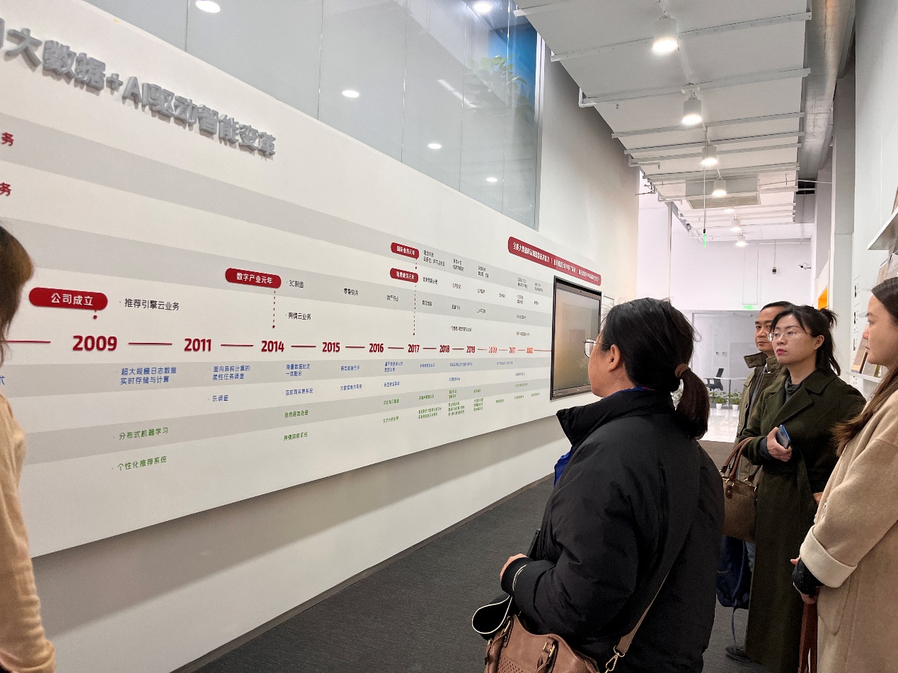 为深入推进工商管理学科专业发展、人才培养与实验室建设,2022年3月23日上午,beat365在线唯一官网工商管理系系主任张剑教授、邹鹏教授、姚卿副教授与青年教师张晓丹、楠丁一行五人,赴北京百分点科技集团股份有限公司调研、学习和交流。百分点科技首席数据科学家、数据科学实验室负责人杜晓梦博士热情接待,双方就数字化时代新商科专业建设面临的问题及建设方向展开深入探讨。首先,杜晓梦博士详细介绍了百分点科技在数据智能领域的成长经验,尤其自2014年数字产业元年以来在3C制造、零售快消、地产、媒体出版、工业互联网等行业领域积累的工作。围绕数据的采集、存储、治理、挖掘、可视化应用等全链条技术,公司核心业务就数据中台技术、智能挖掘、文本分析、知识图谱、大数据操作系统、商情洞察等技术不断演进。