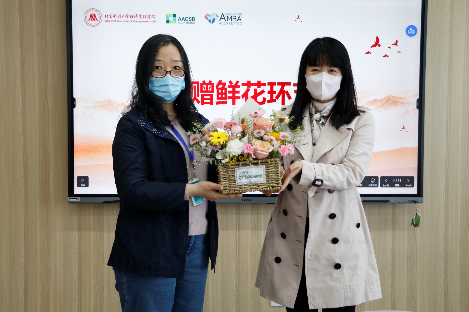 在温馨的氛围中,系支部书记王宾容和系主任冯梅纷纷表示对阚宏老师的不舍之情,并且送上了对她未来退休生活的美好祝愿。教师代表孙莹老师回忆了与阚宏老师共事的点点滴滴,一起追忆了从入职以来的发展历程。青年教师代表白旻老师表达了对阚宏老师的感恩和敬意,阚宏老师对青年教师们的关注和培养令人铭记在心。