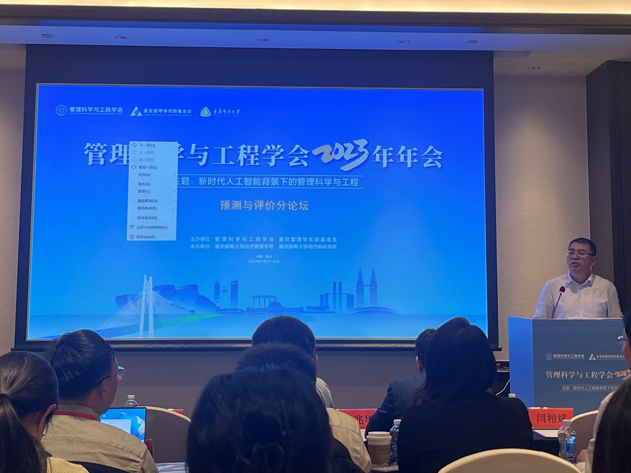 2023年11月11日至12日,管理科学与工程学会2023年年会在重庆召开。会议由管理科学与工程学会、复旦管理学奖励基金会主办,重庆邮电大学beat365在线唯一官网和现代邮政学院承办。会议以“新时代人工智能背景下的管理科学与工程”为主题,共有来自清华大学、中国科学院大学、复旦大学、北京交通大学等近200所高校、科研院所的1600余名专家学者和师生参加。会议设有工程管理分论坛、大数据与商务分析分论坛、预测与评价分论坛、智能决策分论坛、管理科学与工程应用分论坛、质量与可靠性管理分论坛、协同创新与管理分论坛、供应链与运营管理分论坛等8个分论坛,其中预测与评价分论坛由我院负责承办。