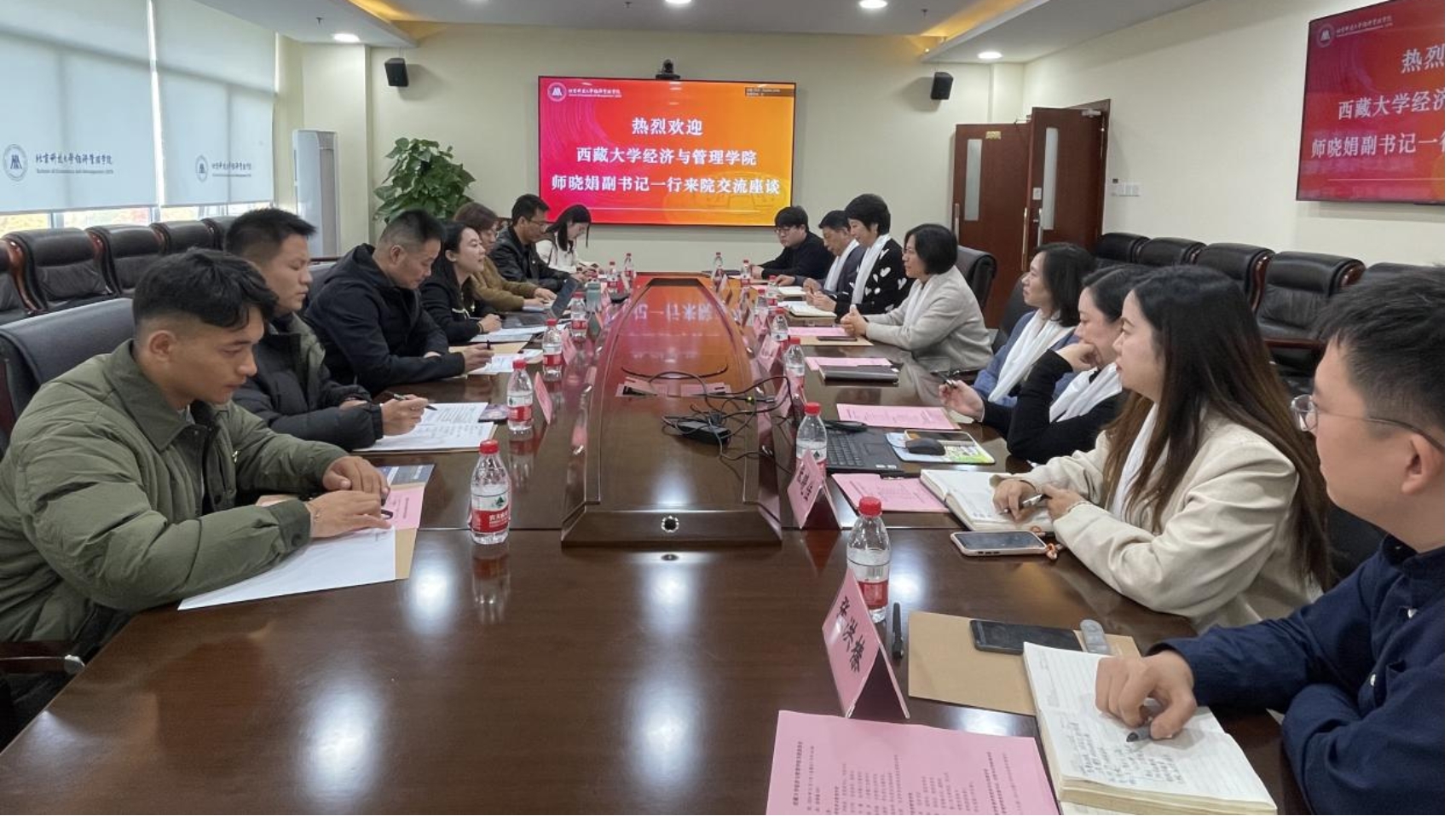 为深入学习贯彻习近平总书记在全国民族团结进步表彰大会上重要讲话精神,推进中华民族共同体建设,巩固发展中华民族大团结,加强院校间的交流互鉴,11月1日下午,beat365在线唯一官网与西藏大学经济与管理学院开展交流座谈活动。