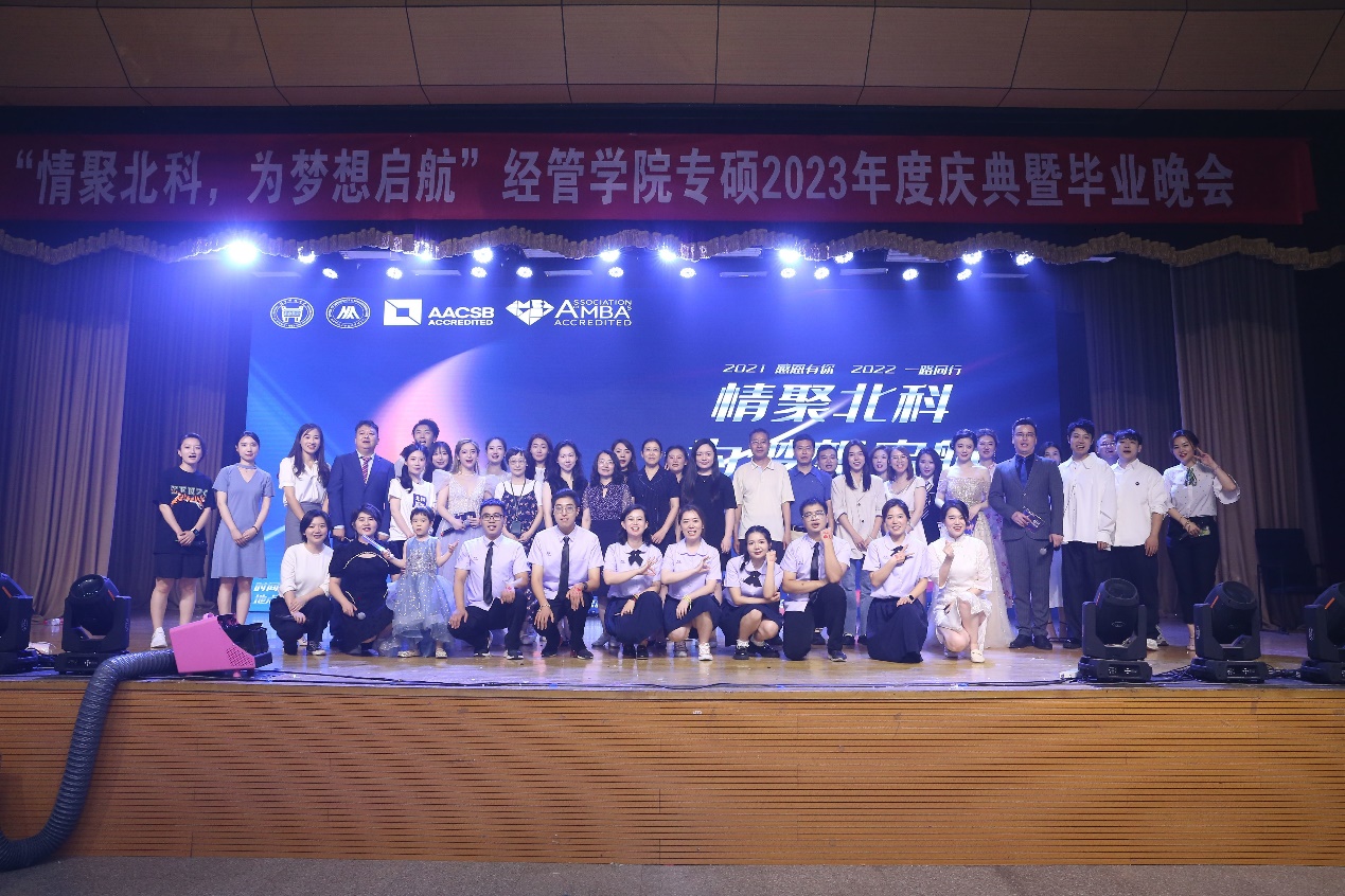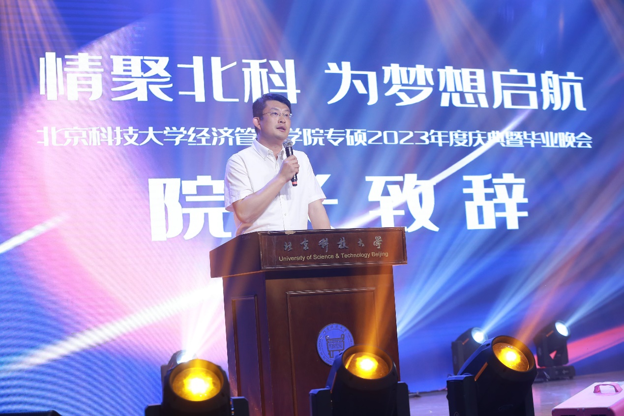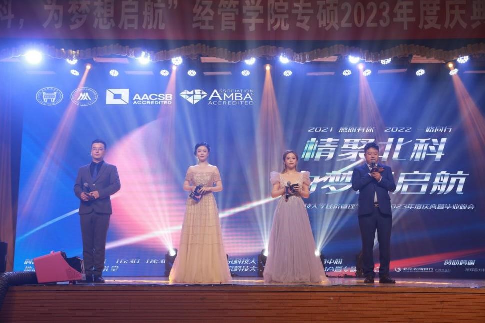 2023年6月18日,“情聚北科,为梦想启航”——beat365在线唯一官网经管学院2023年度庆典暨毕业晚会在教职工礼堂隆重举行。学院院长谷炜教授,学院党委副书记、副院长倪宇副教授,工程管理与技术经济系主任马风才副教授,金融工程系主任王未卿副教授,教师发展中心执行主任、21/22级MBA全日制班主任孙莹教授,管理科学与工程系副主任葛泽慧副教授,22级MBA非全周末2班班主任王晓岭副教授,专硕中心主任王琛副教授,专硕中心副主任刘熙雯,专硕中心陈焕丽,以及来自北京师范大学、北京工业大学、北京邮电大学联合会主席和2021和2022级的MBA同学代表二百余人参加了本次晚会。晚会同步进行在线视频和相册直播,观看总人次累计近2000次。