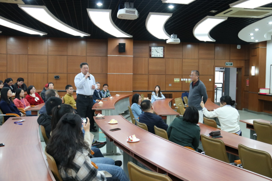 观看完视频短片后,院长闫相斌代表学院致辞。他首先回顾了崔建双老师在学院二十八载“不忘初心”的从教生涯,高度评价了崔老师孜孜不倦的敬业精神、诲人不倦的育人情怀和在教学科研工作中所取得的突出成绩,代表学院对崔老师的辛勤付出和无私奉献表达了衷心的感谢,并祝愿崔老师退休生活快乐、健康、幸福!希望崔老师继续关心和支持学院的发展,积极出计献策,共同谱写经管学院和谐、美好的新篇章。同时,他也号召广大青年教师虚心向前辈学习,把一代又一代经管人的优良传统和宝贵经验传承和发扬光大。