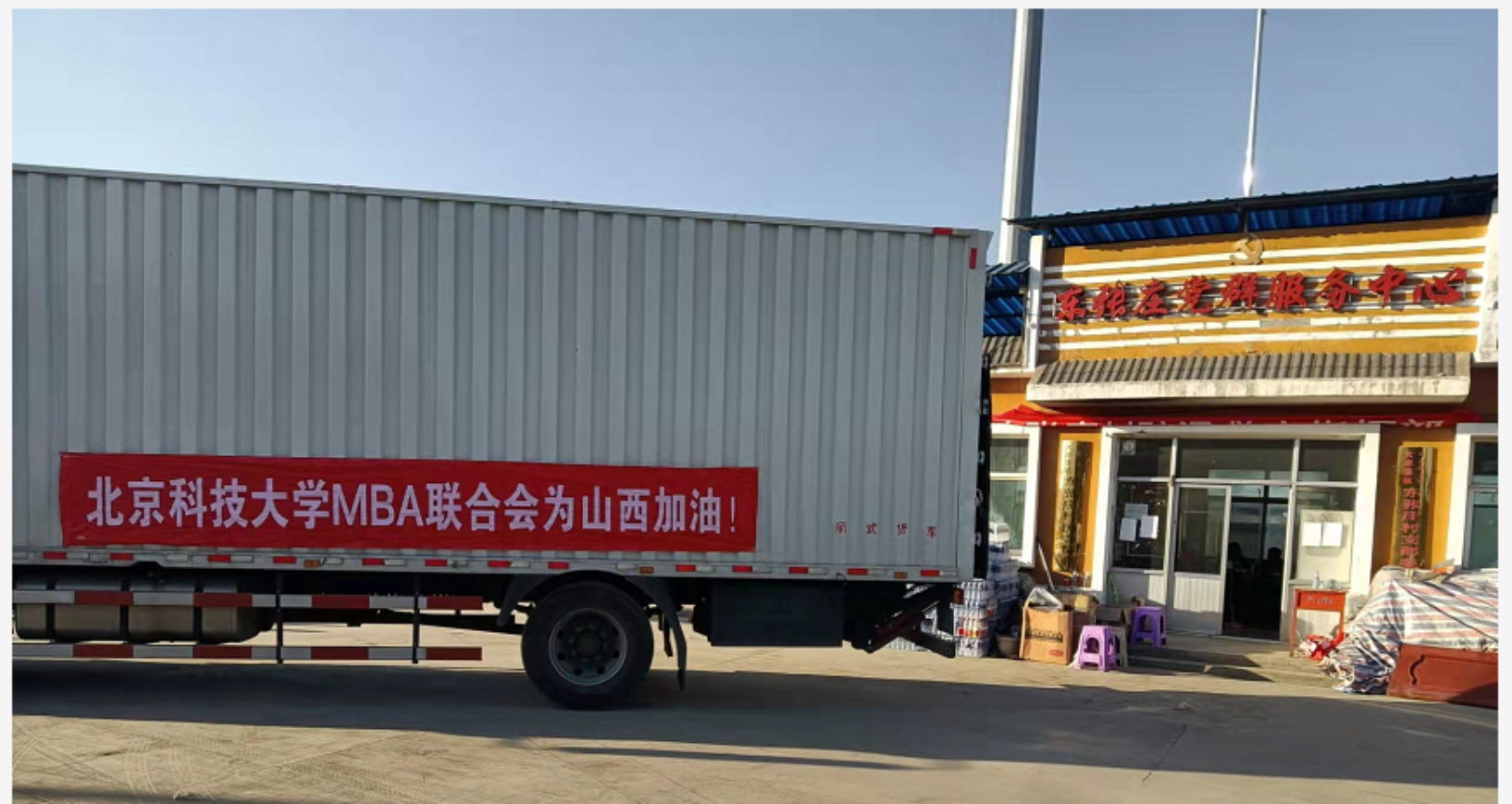 在得知山西省吕梁市大孝堡乡东张庄村与大堡村的灾情后,北科大MBA第一时间发起助力山西抗汛救灾公益募捐活动。2021年10月15日,包括保暖物资及生活用品在内的救援物资筹备到位后,风雨兼程,经过16个小时、613公里的路途奔波,在2021年10月16日下午15:17及时将救援物资送达东张庄村,卸货后工作人员又马不停蹄地赶往大堡村,2021年10月16日下午16:44物资抵达大堡村。在气温骤降的寒秋,为灾区群众送去一份温暖。