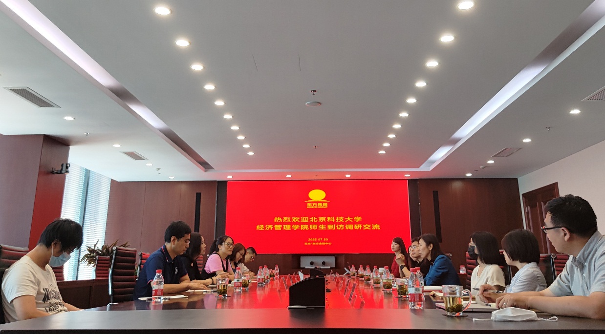 范小华一行重点就高校人才培养、学生实习、毕业生就业等问题与东方集团进行了商讨。双方一致认为可以建立更加紧密的校企合作关系,将企业人才需求与校方人才培养目标进行有机统一,并贯穿在人才培养的既满足集团各公司的实际工作需要,也能让学生更加了解企业的运作机制,更好地将校园所学知识与社会接轨。到访的学生代表们也就自身面临的问题与公司各部门负责人进行了深入恳切的交流,纷纷表示此次调研活动不虚此行,受益匪浅。