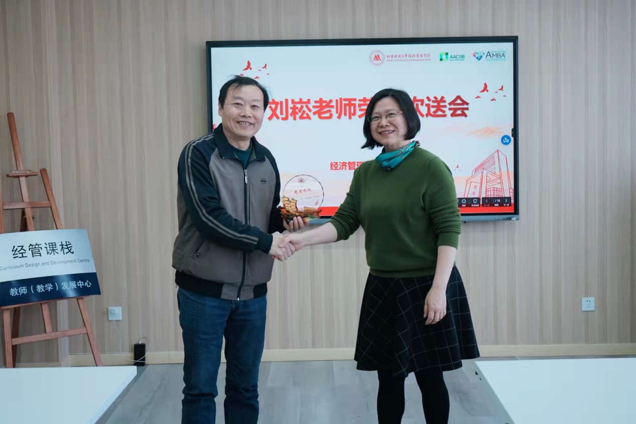 夕阳无限好,晚霞别样红;岁老根弥壮,阳骄叶更浓。2022年3月31日,beat365在线唯一官网分工会在经管楼1205室成功举办刘崧老师荣休欢送会。学院党委书记武森,副院长、分工会主席温雅、各系所及部门教师代表共计30余人参加此次荣休欢送仪式。荣休欢送仪式由办公室主任、分工会副主席薄启欣主持。