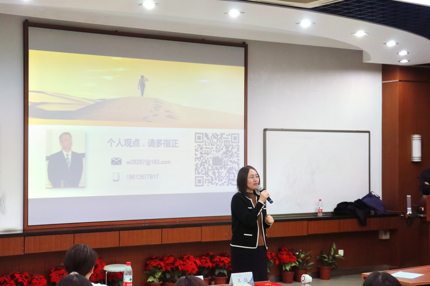 在同学们热烈的掌声中,李晓静副教授向王喆博士颁发了学院聘书,正式聘请王喆博士作为志远论坛的讲座专家。