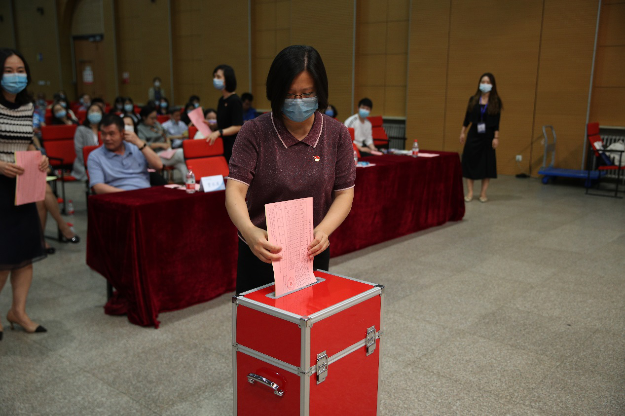 大会投票环节由总监票人李响主持。会上,按照《选举办法》的流程,全体与会代表严格按照换届程序对正式候选人通过无记名投票等额选举的方式进行了投票。投票开始前,监票人员在会上当场检查了票箱,确定投票箱完好、干净、无纸质实物。监票箱检验完毕后,工作人员清点了参会代表人数,并分发本次选举的选票,多余选票全部当场截角作废。随后,在场全体工会会员填好自己的选票后,依次上台将选票投入选票箱中,整个选举过程公开、公正、透明。经过严谨的计票统计,大会总监票人李响当场公布了票选结果。大会选举出温雅等5名教师为beat365在线唯一官网第六届工会委员会委员,选举出李芹等55名教师为beat365在线唯一官网第六届教职工代表大会代表。