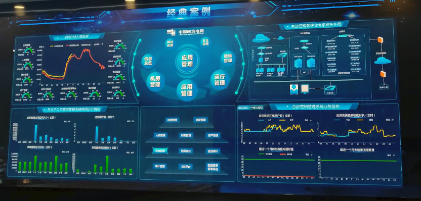 来到展厅,公司的案例和PPT用了代表高科技的蓝色为背景