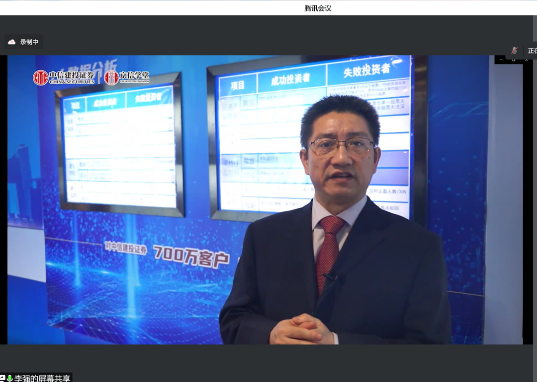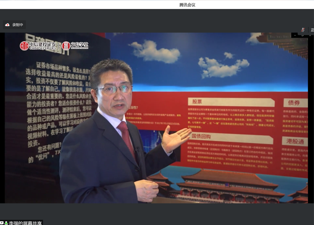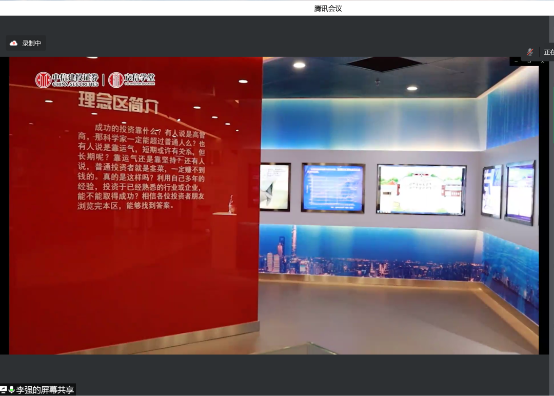 7月26日,beat365在线唯一官网金融工程系及党支部组织专业认识实习参观,该活动得到中信建投投资者教育基地大力支持,带领学院师生参观投教基地,并为学院师生带来题为《beat365在线唯一官网走进京信学堂》主题报告。本次讲座以线上方式开展,由金融工程系杨志明、刘霞老师主持,金融工程系王未卿、黄晓霞等老师参加。中信建投投资者教育基地李强总展开相关介绍,中信建投宣武门营业部杜姝娜参加。