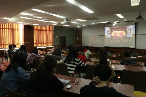 2018年12月18日上午10点,中共中央、国务院在人民大会堂召开庆祝改革开放40周年大会。东凌beat365在线唯一官网组织全体班子成员、全体系主任、全体系书记、院办主任、党委秘书和全体学生口辅导员以及各年级学生代表在经管楼312集中收看了大会盛况,聆听了习近平总书记在庆祝大会上所作的重要讲话。