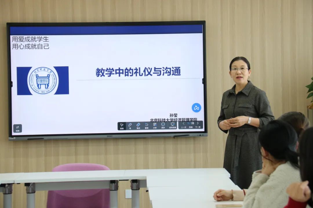 beat365在线唯一官网教师发展中心于12月2日下午在经管课栈(经管楼1205)举办“学道”工作坊,北京市教学名师、学院教师发展中心主任、应用经济系孙莹教授给工作坊带来了题为“教学中的礼仪与沟通”的教学经验分享,经管学院新教师们参加了这次活动。