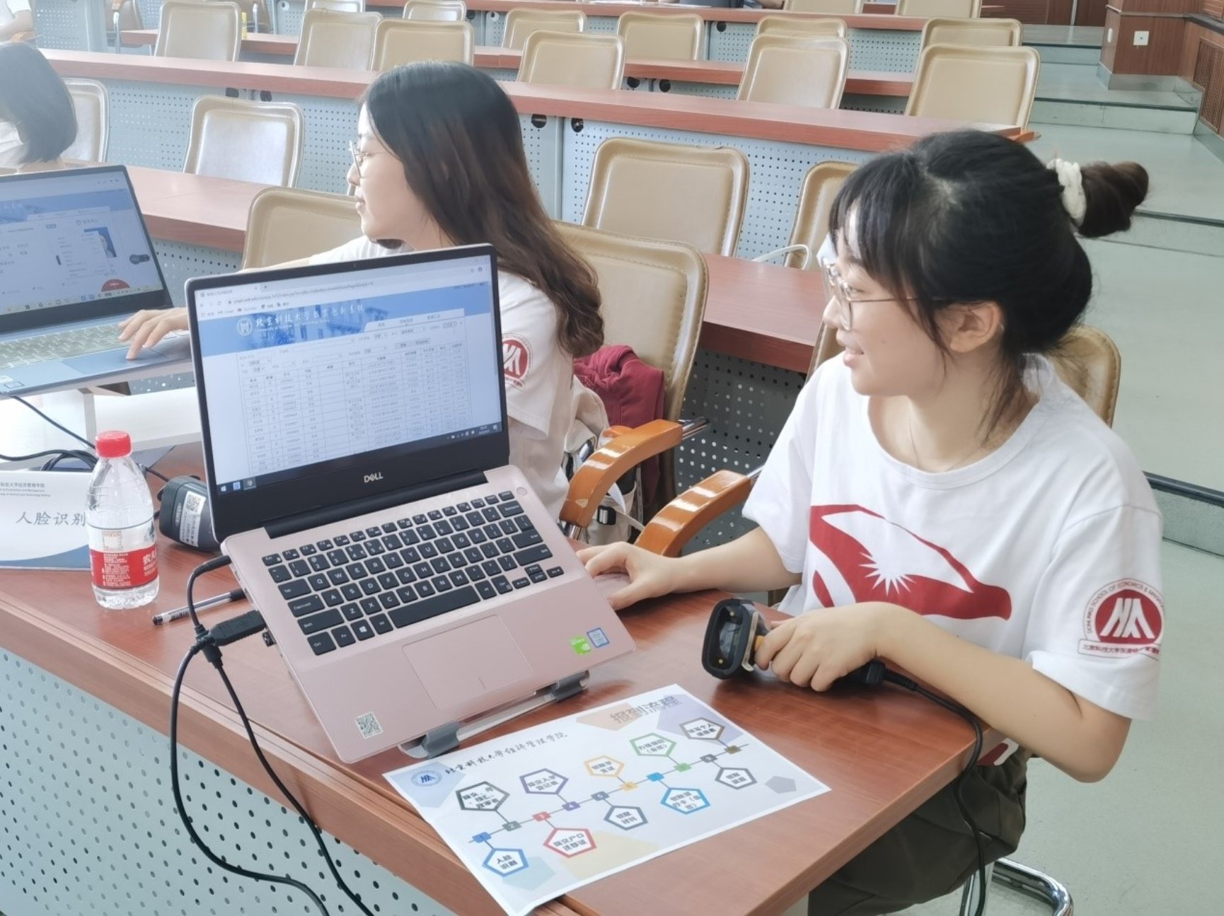 为响应教育部和校方有关要求和部署,学院安排两台电脑同时进行人脸识别环节,同时辅助两名辅导员老师进行人工识别,在保证信息准确的同时大大提高了报到效率,从源头简化了整套报到流程。