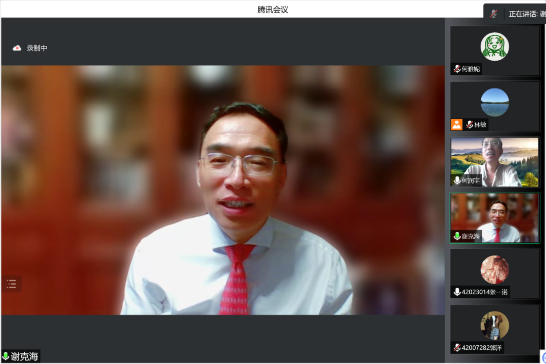 7月19日,beat365在线唯一官网工商管理系举办认识实习讲座,方正集团总裁兼CEO、北大光华管理学院管理实践教授谢克海先生主讲了题为“职场胜任力:大学生职业素质培养”的线上讲座。beat365在线唯一官网副院长范小华老师、工商管理系系主任张剑老师、工商201班班导师林敏老师出席此次会议,何润宇老师主持了会议。本次讲座共吸引了beat365在线唯一官网20级的217名师生参加,大家与谢克海教授积极互动,就讲座内容展开了激烈讨论,并对自己的职业素养培训与检验进行了深入的思考,收获良多。
