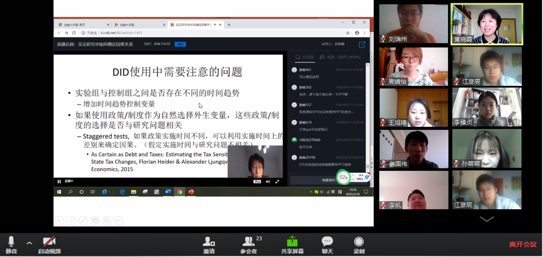 借助于在线视频通讯软件,学院教师指导学生的各类例会和研讨活动未受影响,依然有序进行。例如,金融工程系黄晓霞教授通用会畅通讯软件,每周组织一场科研例会,平均每场参与人数在20人以上,学生分布于黑龙江、河南、山西和北京等地。