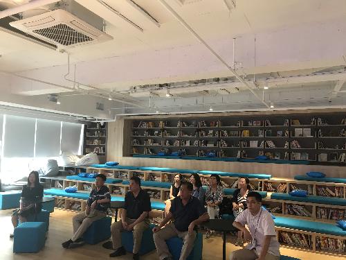 在慧科集团工作人员热情接待下,管工系一行参观了慧科集团开放式办公环境,听取了关于慧科集团发展历程、特色理念、教学创新产品、高校合作模式等方面介绍。