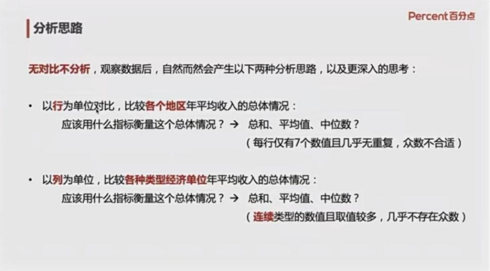 第一部分乔老师介绍了五种常用系统分析方式:第一种频数分析是计算定类数据的选择频数和比例,在数据分析中,掌握数据的基本统计特征,把握数据的整体分布形态。乔老师先介绍了频数与组距等单位后,向同学们讲解如何划分组距,计算频率,最终绘制不等距分组直方图。第二种集中趋势分析的学习中,同学们可以在不同数据场景下选取合适的数值(平均数、中位数、众数)进行数据分析。第三种为离散程度分析,它包含极差、异众比率、方差、标准率、四分位差五种离散程度指标,来测度一组数据分散程度。乔老师将集中趋势分析与离散程度分析相比较,通过不同维度的分析方法,展示在不同数据场景下如何选取相应的分析方法。