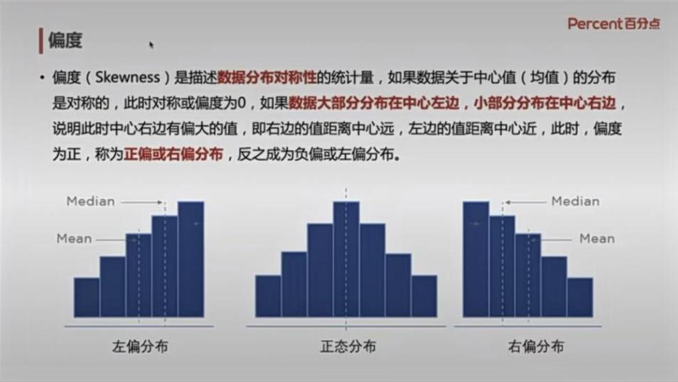 最后一种是分布形态分析,乔老师介绍了这是一种经过图表化之后,数据呈现的形态,了解数据分布形态可以更直观地观察数据,更好地理解数据特征的分析模型。另外,还重点讲述了峰度、偏度等指标,使得同学们进一步了解知识内容。