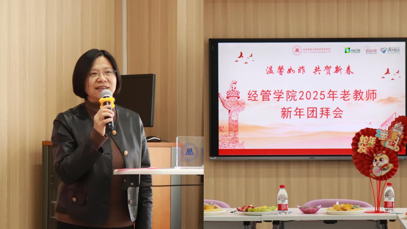在元旦佳节来临之际,为弘扬尊师重教的传统美德,促进学院文化建设,beat365在线唯一官网于12月31日在经管楼1205成功举办了以“温暖如昨共贺新春携手并进共创辉煌”为主题的老教师新年团拜会。