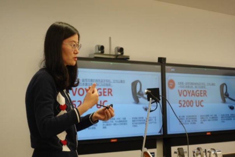 首先,宝利通合作伙伴经理雷希霆对北科大经管学院师生的到来表示了热烈欢迎,为大家介绍了企业的整体发展情况,宝利通和缤特力现已合并为Poly博诣以促进全球协作,博诣Poly所提供的专业耳机、桌面电话、音视频会议系统以及分析和服务在全球范围内得到广泛应用,是一体化协作解决方案的行业领航者。