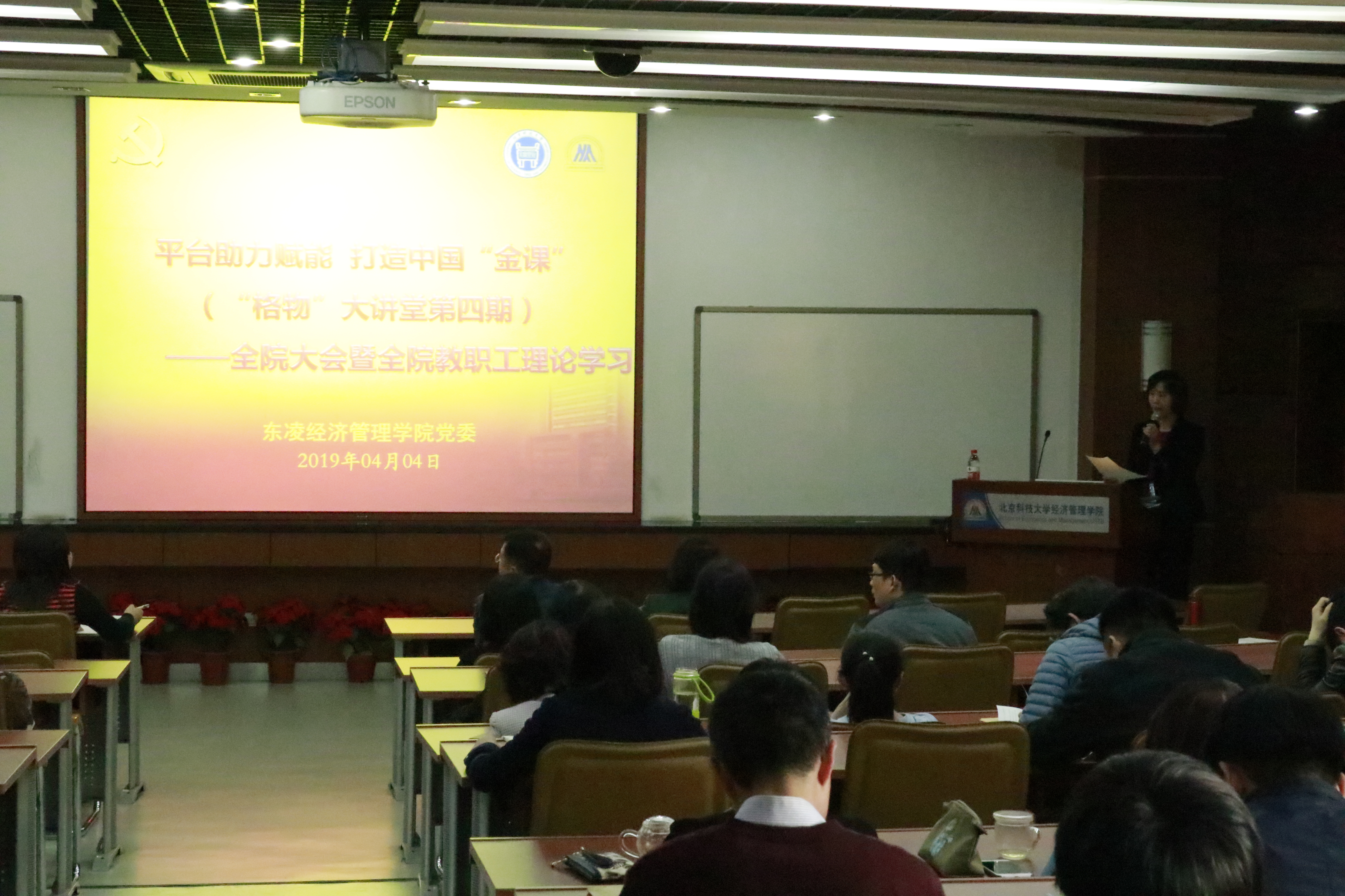 2019年4月4日星期四下午3点半,东凌beat365在线唯一官网全院大会暨全体教职工专题理论学习会在经管楼313召开。