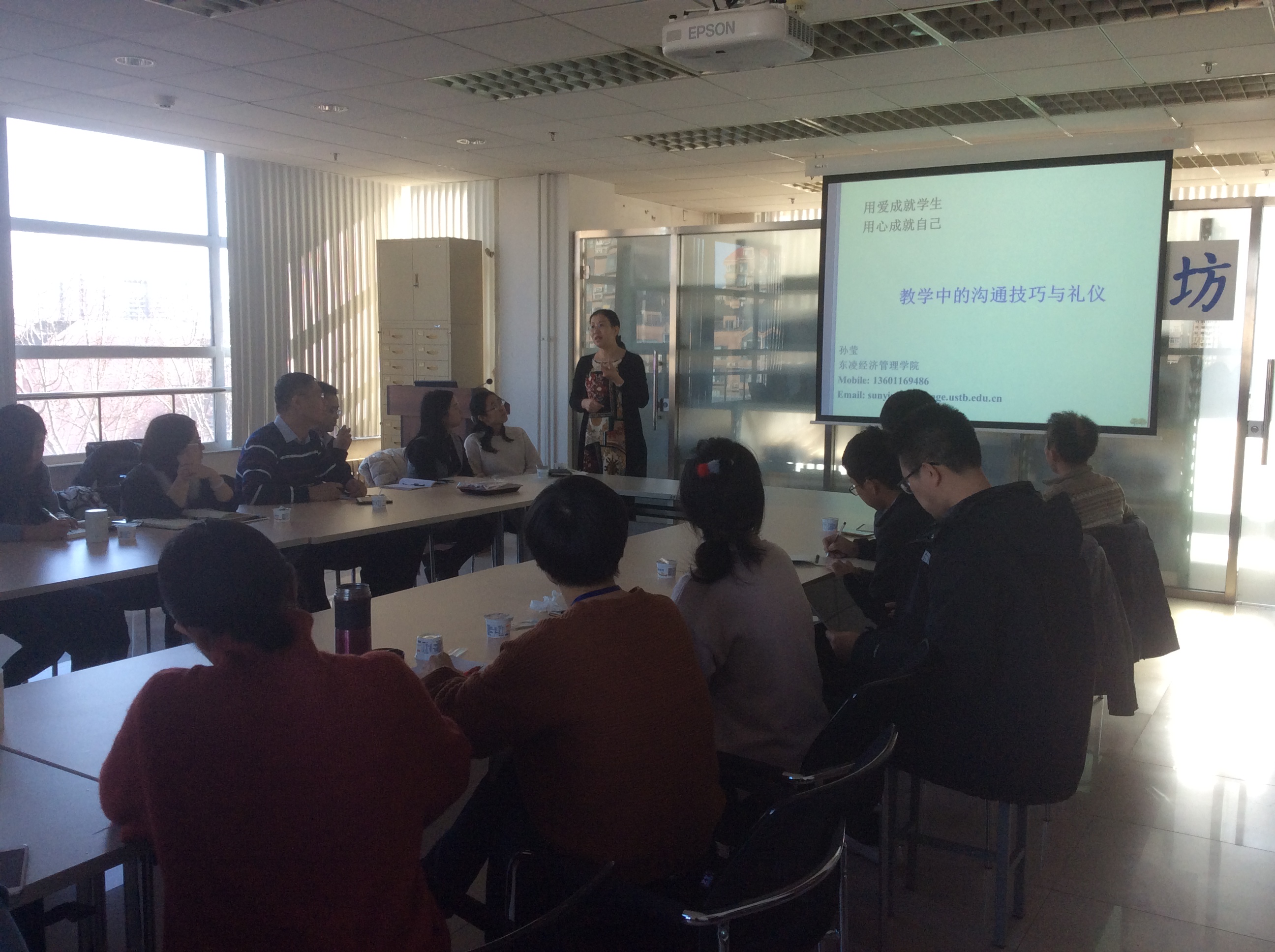 东凌beat365在线唯一官网教师发展中心第二期“学道”工作坊于2018年12月6日11:45在经管楼701以学术午餐的方式举办。北京市教学名师、学院教师发展中心主任、经贸系教师孙莹教授给工作坊带来了题为“教学中的沟通技巧与礼仪”的教学经验分享。